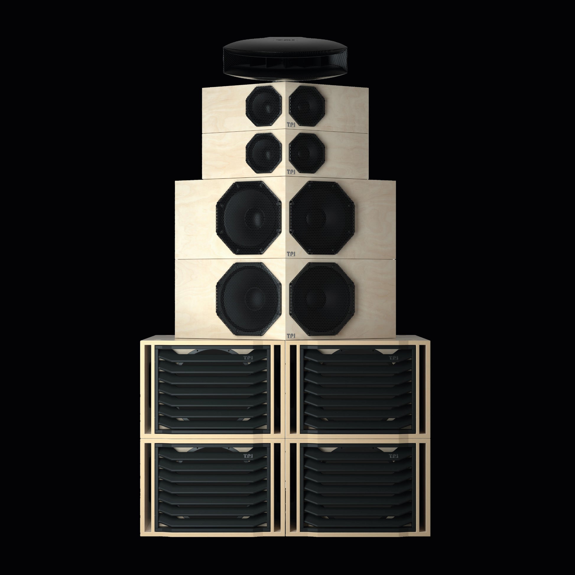 TYPE. TOTEM 2, our flagship ground-stack reference system. Incorporating custom designed drivers, patented crossover technology, and our proprietary V-Fronted array formulation.